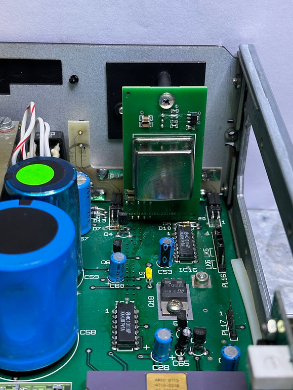 Take care to make sure you have aligned all the pins on the main board with the socket on the new oscillator PCB - Reassemble the case and rear bezel.